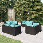 Set de muebles de jardín 9 pzas y cojines ratán sintético negro