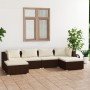 Set muebles de jardín 7 piezas y cojines ratán sintético marrón