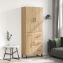Aparador alto 2 pcs Roble Negro Madera de Ingeniería y Vidrio