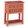 Este bonito aparador de madera está hecho a mano con madera maciza de mango y está decorado con bellos adornos pintados a mano. Será un aporte llamativo para la casa gracias a su colorido diseño. Madera maciza de mango: La madera maciza de mango es una madera dura, tropical y resistente, que sirve para fabricar muebles robustos. Las bonitas vetas de la madera hacen que cada mueble sea ligeramente diferente al resto. Hecho de madera maciza de mango, el mueble de almacenaje es duradero y estable.Amplio espacio de almacenaje: Equipado con 3 cajones y 1 estante, el mueble aparador ofrece un amplio espacio para mantener tus cosas organizadas. Diseño pintado a mano: El mueble de almacenaje posee grandes detalles decorativos pintados a mano, que crean un efecto cálido y rico.Fácil de mantener: El armario de madera se limpia fácilmente con un paño húmedo y requiere menos mantenimiento. Advertencia:Para evitar que vuelque, este producto debe usarse con el dispositivo de fijación a la pared incluido.