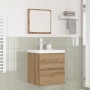 Armario de lavabo con lavamanos y espejo color roble sonoma