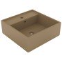 Nuestro lavabo cuadrado, hecho de cerámica de primera calidad, es un complemento elegante para cualquier baño, aseo o tocador. Su superficie mate y su diseño de lujo aportan un aspecto moderno pero elegante. Este lavabo de cerámica artística es más que un recipiente práctico para el uso diario. ¡Es un adorno para tu hogar! Este lavabo mate se puede colocar encima de la consola del baño y también en el baño, la sala de cosméticos, el garaje, la cocina o el lugar de trabajo. Definitivamente se adapta a cualquier estilo de interior. Un rebosadero está equipado para hacer salir el agua cuando se llena demasiado. Se incluye un orificio de grifo de 3,5 cm para instalar un grifo. El agujero de drenaje tiene 4,5 cm de diámetro. Ten en cuenta: La tubería de drenaje no está incluida en la entrega. Si deseas montar este lavabo en la pared, necesitas un par de soportes para soportar la instalación. Ten en cuenta que estos soportes no están incluidos en la entrega.