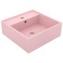 Lavabo lujoso cuadrado rebosadero cerámica crema mate 41x41 cm
