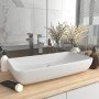 Este lavabo rectangular, hecho de cerámica de primera calidad, es un aporte con estilo perfecto para cualquier baño o aseo. Su superficie mate y su diseño de lujo aportan un aspecto moderno pero elegante. El lavabo de cerámica artística es más que un recipiente práctico para el uso diario. ¡Es un adorno para tu hogar! Este lavabo se puede colocar encima de la consola del baño y también se puede usar en la sala de cosméticos, el garaje, la cocina o el lugar de trabajo. Definitivamente se adapta a cualquier estilo de interior y es bastante fácil de limpiar. El agujero para vaciar tiene 4,5 cm de diámetro. Ten en cuenta: la tubería de drenaje no está incluida en la entrega.
