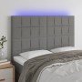 Cabecero con luces LED tela azul 180x5x118/128 cm