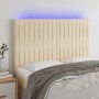 Cabecero con luces LED tela crema 160x5x118/128 cm