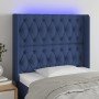 Cabecero con LED de tela azul 147x16x118/128 cm