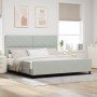 ¡Consigue un sueño más reparador con esta estructura de cama con cabecero! Es un aporte acogedor para cualquier dormitorio. Terciopelo suave: El terciopelo es una tela suave y lujosa, reconocida por su denso pelo de fibras cortadas de forma uniforme que tienen una suave pelusa. La tela de terciopelo posee un característico y suave tacto, lo que hace que sea cómoda al tacto.Altura regulable: El cabecero de la cama es ajustable en altura según tus preferencias.Patas de apoyo: La cama se apoya en patas robustas, que garantizan su estabilidad, seguridad y firmeza.Listones robustos: Los listones de madera contrachapada proporcionan una buena distribución del peso, lo que garantiza que el colchón se mantenga en tu sitio con cada giro y vuelta del cuerpo mientras duermes.Excelente apoyo: El cabecero de la cama te proporciona un excelente apoyo para la espalda mientras estás sentado en la cama para leer o ver la televisión. Nota:La entrega incluye solo una estructura de cama. El colchón no está incluido. Puedes echar un vistazo en nuestra tienda para buscar colchones a juego.Cada producto viene con un manual de montaje en la caja para facilitar el montaje.