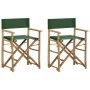 Sillas de director plegables 2 piezas bambú y tela gris oscura