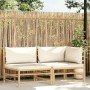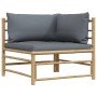 Set de muebles de jardín 2 piezas bambú y cojines gris oscuro