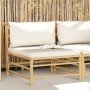 Crea un área de descanso relajante con este elegante juego de muebles de jardín. Este juego de muebles de jardín está hecho de bambú, por lo que es robusto y fácil de limpiar. Los cojines acolchados de asiento y de respaldo añaden un plus de comodidad en tu tiempo de descanso. La mesa auxiliar es ideal para colocar comida y bebidas al alcance. Con una construcción ligera, el juego de muebles es fácil de mover. Puedes colocar el conjunto en cualquier disposición que desees, gracias al diseño modular. Nota: Para prolongar la vida útil de los muebles de exterior, te recomendamos que los limpies con regularidad y no los dejes al aire libre sin protección innecesariamente.Limpieza: Usa una solución de jabón suaveAlmacenamiento: Si es posible, guarda el producto en un lugar fresco y seco en el interior. Si el producto se almacena al aire libre, protégelo con una funda impermeable. Limpia y seca el exceso de agua o nieve de las superficies planas después de una lluvia o nevada. Permite la ventilación para evitar daños relacionados con la humedad.