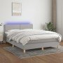 Cama box spring con colchón tela y LED gris claro 120x200 cm