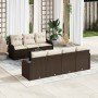 El Conjunto de Sofás de Jardín Moderno es lo último en vida al aire libre contemporánea, combinando funcionalidad con un look estiloso. Este conjunto modular es perfecto para todo tipo de espacios exteriores, ideal para jardines o terrazas. La textura de poliratán está tejida sobre un marco de acero resistente y recubierto de polvo, luciendo líneas elegantes y un estilo minimalista. Agrega un toque de elegancia, ofreciendo comodidad y transformando cualquier área exterior en un refugio donde puedes relajarte. Materiales: Este conjunto de sofás está hecho con poliratán de alta calidad, capaz de soportar los rayos UV, garantizando que dure a pesar del sol intenso. Su sólido marco de acero con recubrimiento en polvo lo mantiene firme y estable, perfecto para aventuras al aire libre. Componentes incluidos: El set trae tres asientos centrales y cuatro sillones, ofreciéndote muchas opciones de diseño. Una mesa con superficie de vidrio completa la zona de asientos, dándole un toque pulido. Cada pieza incorpora cómodos cojines resistentes a la intemperie para mayor confort. Características / Función / Diseño: El diseño modular te permite jugar con diferentes configuraciones y estimula tu creatividad para el espacio exterior. Sus materiales resistentes a los rayos UV protegen los muebles del daño solar, facilitan su mantenimiento y ayudan a que se vean bien con el tiempo. Además, su diseño simple y minimalista lo hace acogedor para un ambiente relajado pero espacioso. Usos recomendados: Es ideal para organizar fiestas en el jardín en primavera o simplemente relajarte con un libro bajo el sol de verano. Su diseño flexible se adapta a cualquier lugar al aire libre. Ya sea que busques un lugar divertido para amigos o un rincón tranquilo para disfrutar a solas, este conjunto se adapta fácilmente a todo tipo de necesidades. Cuidado y mantenimiento: Mantener este conjunto en buen estado es sencillo con algunos consejos de cuidado: solo límpialo con un paño húmedo y usa fundas cuando el clima esté malo para evitar desgaste. Llevar los cojines adentro durante lluvias intensas ayuda a que se mantengan bien.