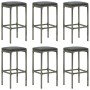 Taburetes altos con cojines 4 uds ratán sintético gris