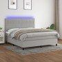 Cama box spring colchón y luces LED tela gris claro 90x200 cm