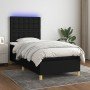 Cama box spring colchón y luces LED tela marrón oscuro 90x200cm