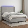 Cama box spring colchón y luces LED tela gris oscuro 180x200 cm