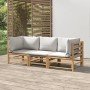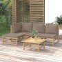 Set de muebles de jardín 6 piezas bambú con cojines gris claro