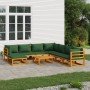 Set muebles jardín 12 pzas madera maciza y cojines gris claro