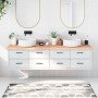 ¿Estás pensando en renovar las encimeras de la casa? ¡Esta encimera de baño de madera es una elección perfecta! Construcción duradera: Esta encimera de baño está hecha de madera maciza de roble, un bonito material natural. La madera de roble tiene un color marrón medio y unas vetas densas, que refuerzan su aspecto único.Aplicaciones versátiles: Además de una encimera de tocador de baño, esta encimera de madera se puede combinar con diferentes bases según tus necesidades. Puede utilizarse como estantería, encimera de armario, encimera de escritorio, tablero de mesa, etc.Superficie sin tratar: Como la encimera de baño está hecha de madera maciza de roble sin acabado, puedes mantener el color natural, pero también puedes pintarlo o lacarlo dependiendo de lo que prefieras.Hecho a mano con borde natural: Esta encimera de baño está hecha a mano con un borde natural. Debido a que los nudos, grietas, formas ligeramente curvadas y tonos de color son parte de la madera de roble, cada pieza de encimera de roble tiene su propio carácter único. La entrega es aleatoria. Información útil:Al ser un producto natural, la madera puede presentar nudos e imperfecciones que rellenamos con rellenos para garantizar un aspecto liso.