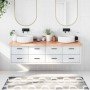 ¿Estás pensando en renovar las encimeras de la casa? ¡Esta encimera de baño de madera es una elección perfecta! Construcción duradera: Esta encimera de baño está hecha de madera maciza de roble, un bonito material natural. La madera de roble tiene un color marrón medio y unas vetas densas, que refuerzan su aspecto único.Aplicaciones versátiles: Además de una encimera de tocador de baño, esta encimera de madera se puede combinar con diferentes bases según tus necesidades. Puede utilizarse como estantería, encimera de armario, encimera de escritorio, tablero de mesa, etc.Superficie tratada: La encimera de baño está lista para usar, ya que ha sido barnizada y no necesita ningún acabado adicional.Hecho a mano con borde natural: Esta encimera de baño está hecha a mano con un borde natural. Debido a que los nudos, grietas, formas ligeramente curvadas y tonos de color son parte de la madera de roble, cada pieza de encimera de roble tiene su propio carácter único. La entrega es aleatoria. Información útil:Al ser un producto natural, la madera puede presentar nudos e imperfecciones que rellenamos con rellenos para garantizar un aspecto liso.