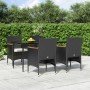 Juego de comedor de jardín 7 piezas con cojines gris y negro