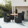 Set de comedor de jardín 7 pzas y cojines ratán sintético negro