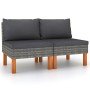 Sofás centrales 2 uds ratán sintético y madera de eucalipto