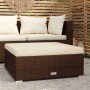 Reposapiés de jardín y cojín ratán sintético marrón 70x70x30 cm