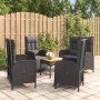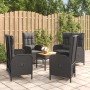 Este moderno juego de comedor de jardín, con un diseño elegante y contemporáneo, es una excelente opción para comer o relajarse en el jardín. Material resistente a la intemperie: El ratán PE, también conocido como ratán sintético, es resistente a la intemperie y fácil de limpiar. La parte exterior se mantiene hermosa durante mucho tiempo. Ofrece una gran calidad, comodidad y aspecto estético.Estructura robusta: Las estructuras de acero con recubrimiento en polvo hacen que el juego de comedor para exterior sea resistente y estable para usar a diario al aire libre.Práctica superficie: La superficie lisa de la mesa de jardín está hecha de vidrio templado, fácil de limpiar con un paño húmedo. Además, la robusta superficie de la mesa es perfecta para colocar comidas, bebidas y elementos decorativos.Función reclinable: Las sillas de jardín está especialmente diseñadas con una función reclinable para que puedas ajustar el respaldo según tu comodidad.Cómodo asiento: El respaldo añade un plus de comodidad al asiento de la silla de jardín. Además, los cojines gruesos y acolchados proporcionan comodidad al asiento. Información útil:Para facilitar al máximo el montaje, cada producto se entrega con un manual. Nota:Para asegurarte de que tus muebles de exterior se mantengan hermosos, recomendamos protegerlos con una funda impermeable.