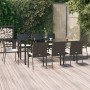 Este moderno juego de comedor de jardín, con un diseño elegante y contemporáneo, es una excelente opción para comer o relajarse en el jardín. Material resistente a la intemperie: El ratán PE, también conocido como ratán sintético, es resistente a la intemperie y fácil de limpiar. La parte exterior se mantiene hermosa durante mucho tiempo. Ofrece una gran calidad, comodidad y aspecto estético.Estructura robusta: Las estructuras de acero con recubrimiento en polvo hacen que el juego de comedor para exterior sea resistente y estable para usar a diario al aire libre.Práctica superficie: La superficie lisa de la mesa de jardín está hecha de vidrio templado, fácil de limpiar con un paño húmedo. Además, la robusta superficie de la mesa es perfecta para colocar comidas, bebidas y elementos decorativos.Diseño modular: El juego de comedor para patio es flexible y fácil de mover, por lo que puedes combinarlo con otros segmentos modulares de la web para crear tus propias configuraciones personales de muebles de comedor para jardín.Cómodo asiento: El respaldo añade un plus de comodidad al asiento de la silla de jardín. Además, los cojines gruesos y acolchados proporcionan comodidad al asiento. Información útil:Para facilitar al máximo el montaje, cada producto se entrega con un manual. Nota:Para asegurarte de que tus muebles de exterior se mantengan hermosos, recomendamos protegerlos con una funda impermeable.