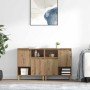 Estos modernos aparadores, con un diseño elegante y clásico, están destinados a mejorar el interior de la casa. Material duradero: La madera contrachapada tiene una calidad excepcional, con una superficie lisa, y también cuenta con fuerza, estabilidad y resistencia a la humedad. Hecho de madera contrachapada, el armario es fácil de limpiar con un paño húmedo.Amplio espacio de almacenaje: Este aparador tiene 4 compartimentos y 2 puertas, por lo que ofrece un amplio espacio para mantener bien organizados y al alcance revistas, libros, DVD, dispositivos multimedia y otros elementos esenciales.Patas de madera: Las patas de madera maciza de eucalipto confieren un aspecto natural y agradable al armario de almacenaje, al mismo tiempo que garantizan su estabilidad.Función expositora: La parte superior del armario es perfecta para colocar plantas, fotos enmarcadas y otros elementos decorativos. Información útil:Las puertas se pueden instalar de dos maneras. Advertencia:Para evitar que vuelque, este producto debe usarse con el dispositivo de fijación a la pared incluido.