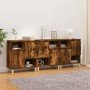 Aparadores 3 uds madera contrachapada gris hormigón 60x35x70 cm