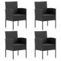 Sillas de jardín con cojines crema 4 uds ratán sintético negro
