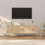 Este set de muebles de TV clásico está diseñado para ser el centro de atención de tu estancia, gracias a su diseño moderno a la par que práctico. Material robusto: La madera contrachapada tiene una calidad excepcional, con una superficie lisa y también cuenta con fuerza, estabilidad y resistencia a la humedad. Hechos de madera contrachapada, estos muebles de TV son fáciles de limpiar.Amplio espacio de almacenamiento: Estos muebles de TV ofrecen un amplio espacio de almacenamiento para mantener todas tus revistas, DVD y cualquier otro artículo bien organizados.Diseño de pared: Estos muebles no ocupan espacio del suelo. Puedes colgarlas en la pared fácilmente.Puertas prácticas: Mantén tus cosas libres de polvo al ocultarlas detrás de las puertas de los muebles. Información útil:Para facilitar al máximo el montaje, cada producto se entrega con un manual.Los tornillos y los tacos para el interior de la pared no están incluidos. Recomendamos encontrar y utilizar tornillos y tacos adecuados específicamente para las paredes. Si no estás seguro, puedes consultar con un profesional. Lee y sigue cada paso de las instrucciones.