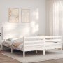 Estructura de cama con cabecero madera maciza blanco 140x190 cm