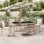 Mesa de jardín ratán PE negro y superficie madera maciza acacia