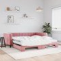 Sofá cama nido con cajones terciopelo rosa 100x200 cm
