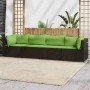 Set muebles de jardín 3 piezas y cojines ratán sintético marrón