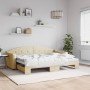 Este sofá cama 2 en 1 con cama nido, que sirve como sofá y cama, es un complemento práctico y llamativo para tu salón o dormitorio. Sofá cama versátil: El sofá cama funciona como sofá durante el día y se convierte fácilmente en una cama doble por la noche sacando la cama nido, lo que proporciona una solución práctica para recibir invitados y maximizar el espacio. Amplio espacio de almacenamiento: Esta cama de invitados tiene dos cajones con ruedas que brindan un amplio espacio para guardar ropa, calcetines, juguetes, cojines, etc. Tela duradera y construcción sólida: Este sofá cama tiene una estructura resistente hecha de madera y metal y está tapizado con una tela duradera y cómoda. Información útil:Los colchones no están incluidos en este sofá cama. Ofrecemos una variada selección de colchones. Puedes echar un vistazo a nuestra tienda para buscar el correspondiente colchón.
