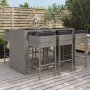 Mesa y taburetes altos jardín 7 pzas y cojines ratán PE marrón