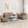 Este juego de sofás es un lugar excelente para charlar, leer, ver la televisión o simplemente relajarse. Está pensado para ser el centro de atención de la casa. Material duradero: El cuero sintético de primera calidad es un material muy duradero. Es resistente a las manchas, por lo que es fácil de limpiar con un paño húmedo. Además, la superficie lisa da un aspecto lujoso y la belleza del cuero auténtico.Estructura robusta y estable: La estructura de madera contrachapada y metal del sofá garantiza su solidez y estabilidad.Cómodo asiento: El sofá es muy cómodo gracias al asiento con relleno, los reposabrazos y la almohada trasera.Diseño llamativo: Con un diseño sencillo a la par que moderno, este asiento de salón está pensado para llamar la atención en la estancia.