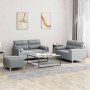 Este juego de sofás es un lugar excelente para charlar, leer, ver la televisión o simplemente relajarse. Está pensado para ser el centro de atención de la casa. Tela duradera: La tela posee un aspecto sencillo y limpio, además de ser transpirable y duradera.Estructura robusta y estable: La estructura de madera contrachapada y metal del sofá garantiza su solidez y estabilidad.Cómodo asiento: El sofá es muy cómodo gracias al asiento con relleno, los reposabrazos y la almohada trasera.Prácticas almohadas cilíndricas: Estas almohadas cilíndricas no sólo adornan la decoración, sino que también pueden añadir un plus de comodidad cuando estás sentado o tumbado.
