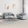 Este juego de sofás es un lugar excelente para charlar, leer, ver la televisión o simplemente relajarse. Está pensado para ser el centro de atención de la casa. Tela duradera: La tela posee un aspecto sencillo y limpio, además de ser transpirable y duradera.Estructura robusta y estable: La estructura de madera contrachapada y metal del sofá garantiza su solidez y estabilidad. Cómodo asiento: El sofá es muy cómodo gracias al asiento con relleno, los reposabrazos y la almohada trasera. Prácticas almohadas cilíndricas: Estas almohadas cilíndricas no sólo adornan la decoración, sino que también pueden añadir un plus de comodidad cuando estás sentado o tumbado.