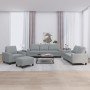 Este juego de sofás es un lugar excelente para charlar, leer, ver la televisión o simplemente relajarse. Está pensado para ser el centro de atención de la casa. Tela duradera: La tela posee un aspecto sencillo y limpio, además de ser transpirable y duradera.Estructura robusta y estable: La estructura de madera contrachapada y metal del sofá garantiza su solidez y estabilidad.Cómodo asiento: El sofá es muy cómodo gracias al asiento con relleno, los reposabrazos y la almohada trasera.Taburete versátil: El taburete es adecuado para descansar los pies cuando te recuestas en el sofá, y te ofrece un asiento adicional en la estancia. Además, el diseño sencillo y el tamaño compacto lo hacen ideal para casi todos los espacios de la casa.