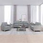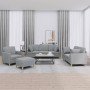Este juego de sofás es un lugar excelente para charlar, leer, ver la televisión o simplemente relajarse. Está pensado para ser el centro de atención de la casa. Tela duradera: La tela posee un aspecto sencillo y limpio, además de ser transpirable y duradera.Estructura robusta y estable: La estructura de madera contrachapada y metal del sofá garantiza su solidez y estabilidad.Cómodo asiento: El sofá es muy cómodo gracias a los mullidos asientos, los reposabrazos y los cojines de respaldo.Taburete versátil: El taburete es adecuado para descansar los pies cuando te recuestas en el sofá, y te ofrece un asiento adicional en la estancia. Además, el diseño sencillo y el tamaño compacto lo hacen ideal para casi todos los espacios de la casa.