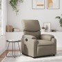 ¡Siéntate y descansa en este comodísimo sillón reclinable eléctrico! Función de reclinación eléctrica: Este sillón reclinable está equipado con un motor eléctrico para ajustar el reposapiés y el respaldo de forma automática a cualquier posición que desees con sólo pulsar el botón en el lateral del sillón. Esta característica permite una inclinación máxima de 135 grados. Además, el respaldo vuelve automáticamente a la posición original con sólo pulsar el botón.Cómodo asiento: El grueso acolchado del asiento, el respaldo y los anchos reposabrazos recubiertos de cuero sintético proporcionan una sensación acogedora y cálida, como si te estuvieran abrazando. El cuero sintético es un material muy duradero y resistente a las manchas, por lo que resulta fácil de limpiar con un paño húmedo. Además, la superficie lisa le confiere un aspecto lujoso y la belleza del cuero auténtico.Práctico bolsillo lateral: Este sillón tiene un bolsillo lateral para que guardes tus cosas al alcance de la mano.Estructura maciza y estable: La estructura, hecha de madera y metal, proporciona una estructura y una estabilidad fuertes. Este sillón reclinables es cómodo y duradero.