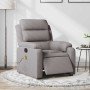 ¡Siéntate y descansa en este comodísimo sillón reclinable de masaje eléctrico! Función de reclinación eléctrica: Este sillón reclinable está equipado con un motor eléctrico para ajustar el reposapiés y el respaldo de forma automática a cualquier posición que desees con sólo pulsar el botón en el lateral del sillón. Esta característica permite una inclinación máxima de 135 grados. Además, el respaldo vuelve automáticamente a la posición original con sólo pulsar el botón.Función de vibración: Los 6 puntos de masaje te harán disfrutar de un masaje mejor enfocado. Además, el mando incluido te permite elegir diferentes programas de masaje. La función de masaje funciona a través del conector USB que requiere una fuente de alimentación USB de 5 V certificada (no incluida).Cómodo asiento: El mullido asiento , el respaldo y los amplios reposabrazos cubiertos de tela proporcionan una sensación cómoda y acogedora, para que estés de maravilla mientras estás sentado. La tela posee un aspecto sencillo y limpio, y es transpirable y duradera.Práctico bolsillo lateral: Este sillón cuenta con un bolsillo lateral para guardar el mando a distancia o mantener tus cosas al alcance de la mano.Estructura maciza y estable: La estructura, hecha de madera y metal, proporciona una estructura y una estabilidad fuertes. Este sillón reclinables es cómodo y duradero.