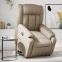 ¡Siéntate y descansa en este comodísimo sillón reclinable elevador! Función de elevación eléctrica: Este sillón reclinable para las personas mayores está equipado con un motor eléctrico para la función de elevación. Gracias a la función de elevación que empuja el sillón hacia arriba por completo, te puedes levantar fácilmente, sin tensiones en la espalda y las rodillas, con sólo pulsar el botón.Función de reclinado manual: Este sillón reclinable tiene un mango en el lado derecho. Con sólo tirar de él, puedes ajustar manualmente el reposapiés y el respaldo a cualquier posición que te resulte cómoda. Esta función permite una inclinación máxima de 135 grados. Además, el respaldo vuelve rápidamente a su posición original con solo tirar del mango.Cómodo asiento: El grueso acolchado del asiento, el respaldo y los anchos reposabrazos recubiertos de cuero sintético proporcionan una sensación acogedora y cálida, como si te estuvieran abrazando. El cuero sintético es un material muy duradero y resistente a las manchas, por lo que resulta fácil de limpiar con un paño húmedo. Además, la superficie lisa le confiere un aspecto lujoso y la belleza de la piel auténtica.Práctico bolsillo lateral: Este sillón tiene un bolsillo lateral para que guardes tus cosas al alcance de la mano.Estructura maciza y estable: La estructura, hecha de madera y metal, proporciona una estructura y una estabilidad fuertes. Este sillón reclinables es cómodo y duradero.