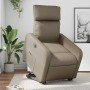 ¡Siéntate y descansa en este comodísimo sillón reclinable de masaje elevable! Función de elevación eléctrica: Este sillón reclinable para las personas mayores está equipado con un motor eléctrico para la función de elevación. Gracias a la función de elevación que empuja el sillón hacia arriba por completo, te puedes levantar fácilmente, sin tensiones en la espalda y las rodillas, con sólo pulsar el botón.Función de reclinado manual: Este sillón reclinable tiene un mango en el lado derecho. Con sólo tirar de él, puedes ajustar manualmente el reposapiés y el respaldo a cualquier posición que te resulte cómoda. Esta función permite una inclinación máxima de 135 grados. Además, el respaldo vuelve rápidamente a su posición original con solo tirar del mango.Función de vibración: Los 6 puntos de masaje te harán disfrutar de un masaje mejor enfocado. Además, el mando incluido te permite elegir diferentes programas de masaje. La función de masaje funciona a través del conector USB que requiere una fuente de alimentación USB de 5 V certificada (no incluida).Cómodo asiento: El grueso acolchado del asiento, el respaldo y los anchos reposabrazos recubiertos de cuero sintético proporcionan una sensación acogedora y cálida, como si te estuvieran abrazando. El cuero sintético es un material muy duradero y resistente a las manchas, por lo que resulta fácil de limpiar con un paño húmedo. Además, la superficie lisa le confiere un aspecto lujoso y la belleza del cuero auténtico.Práctico bolsillo lateral: Este sillón tiene un bolsillo lateral para que guardes tus cosas al alcance de la mano.Estructura maciza y estable: La estructura, hecha de madera y metal, proporciona una estructura y una estabilidad fuertes. Este sillón reclinables es cómodo y duradero.